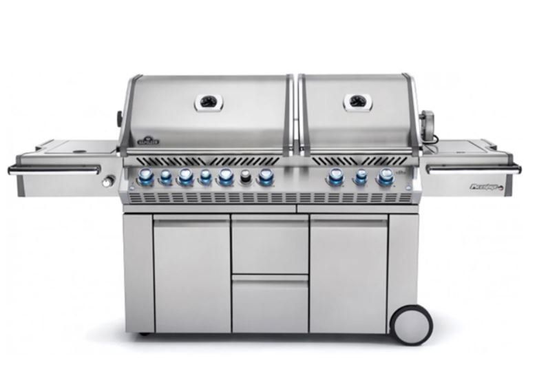 Le griglie a gas propano Napoleon Prestige® con bruciatori a infrarossi laterali e posteriori sono il pacchetto completo per grigliare.